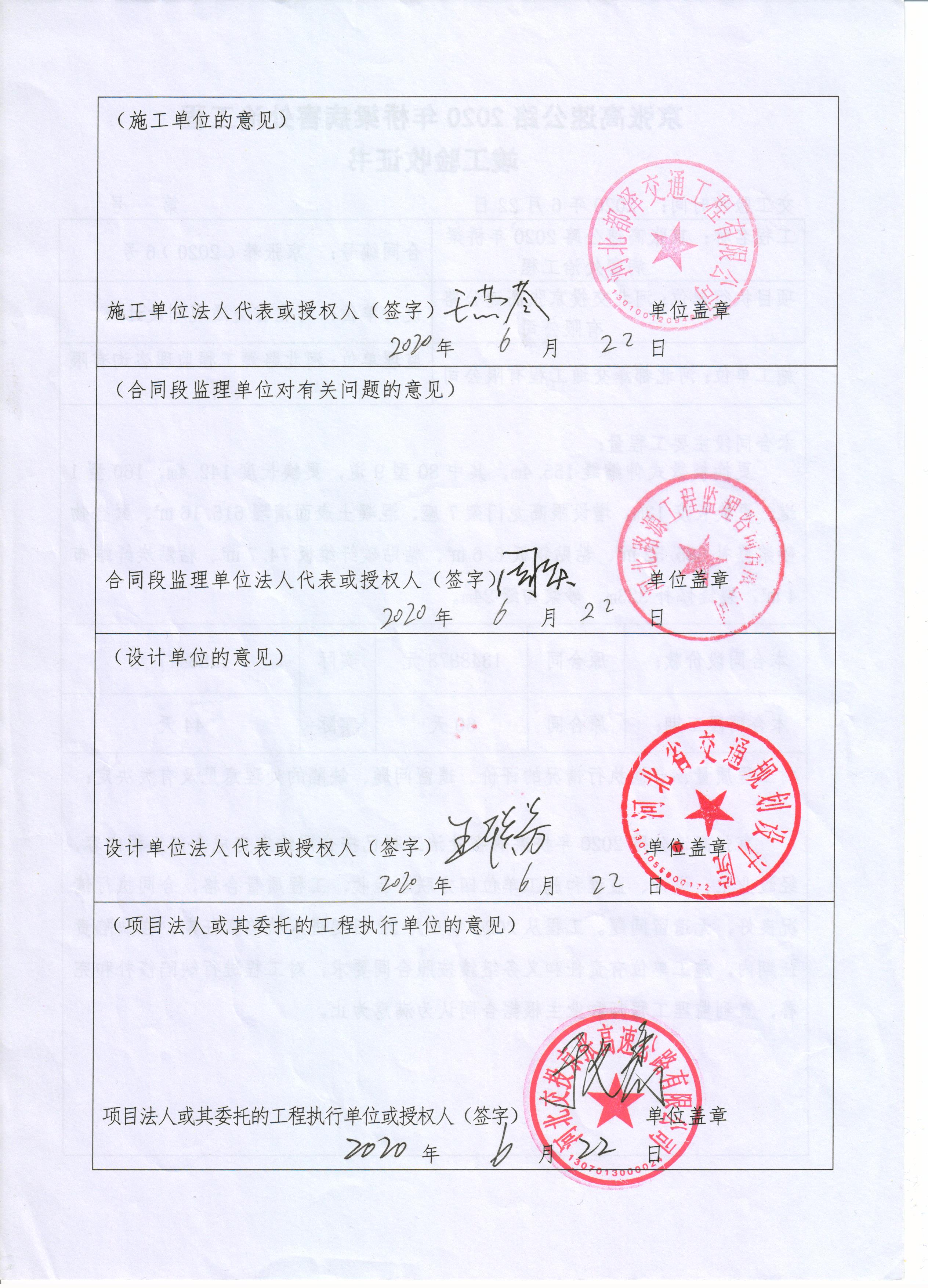 京張高速公路2020年橋梁病害處治工程竣工驗(yàn)收證書(shū)